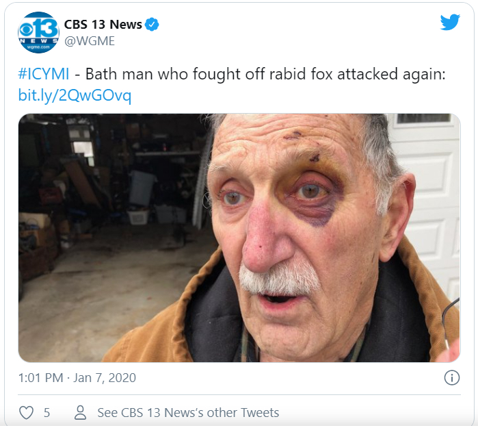 Kenney slap fra overfaldet med en del skader, efterfølgende viste det sig ligeledes, at ræven – som han havde slåsset med – var smittet med rabies, så det måtte han også behandles for.