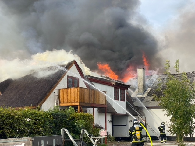 “Kraftig brand i villa i Kirke Hyllinge tirsdag eftermiddag. Slukningsarbejdet forventes at tage mange timer,”