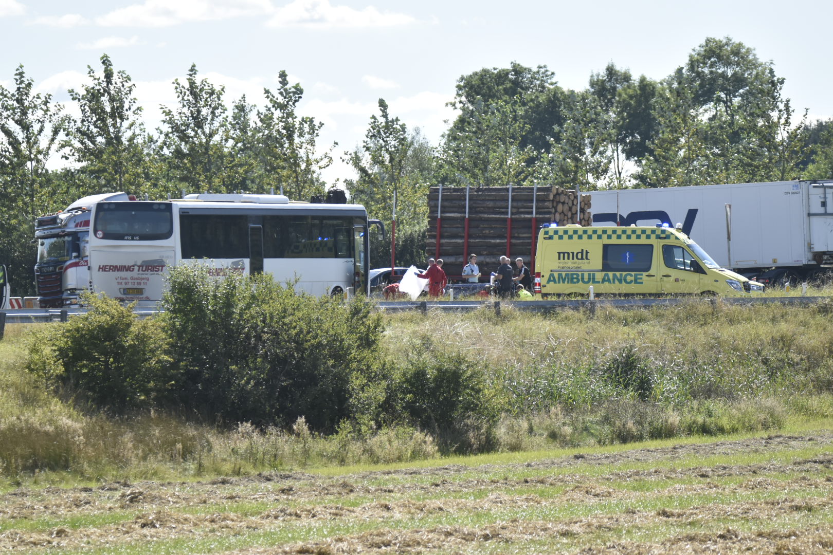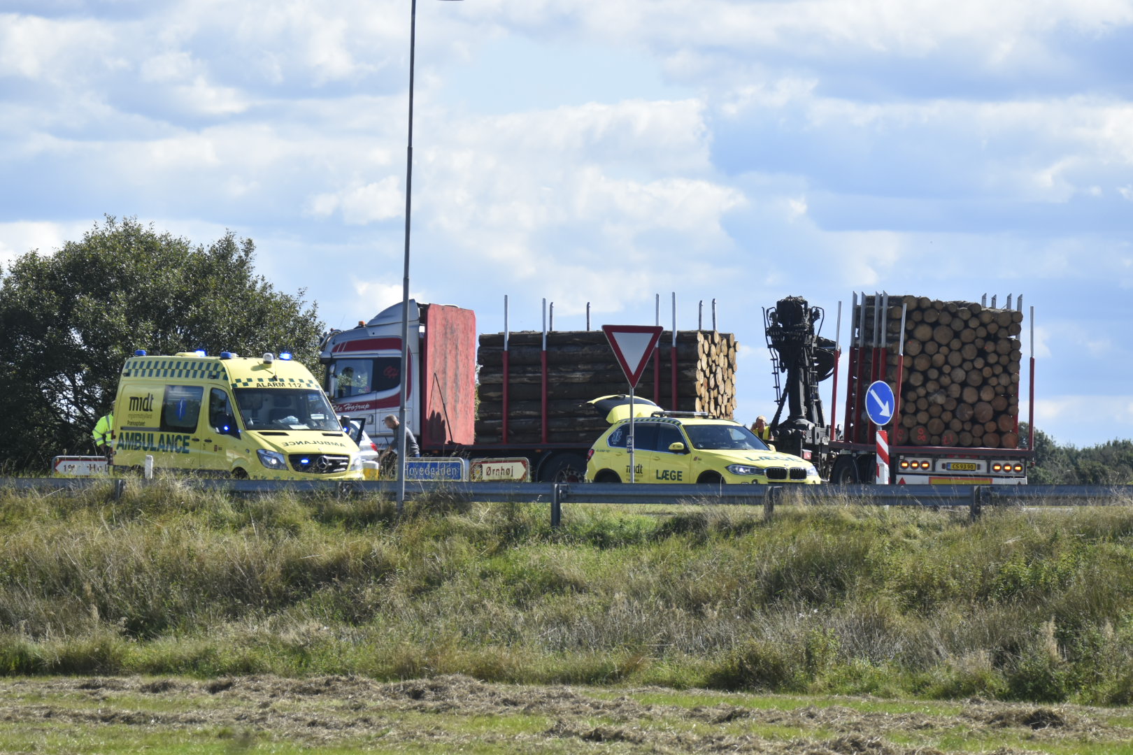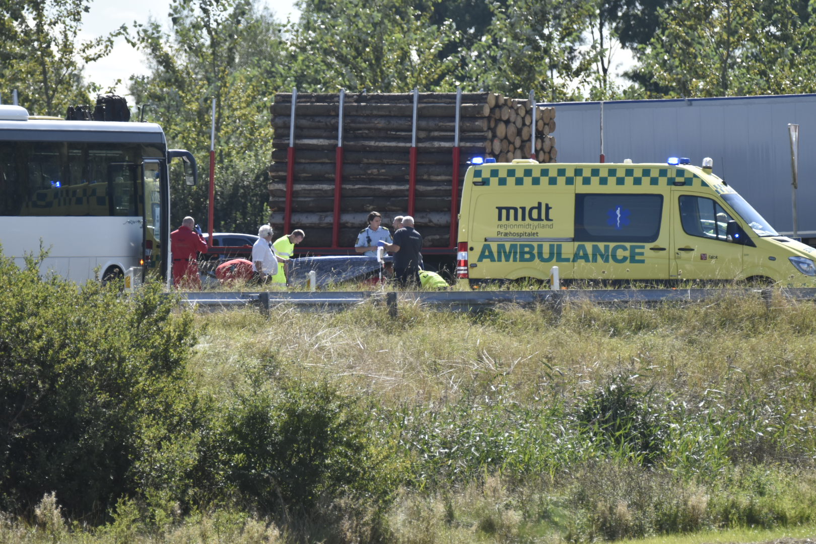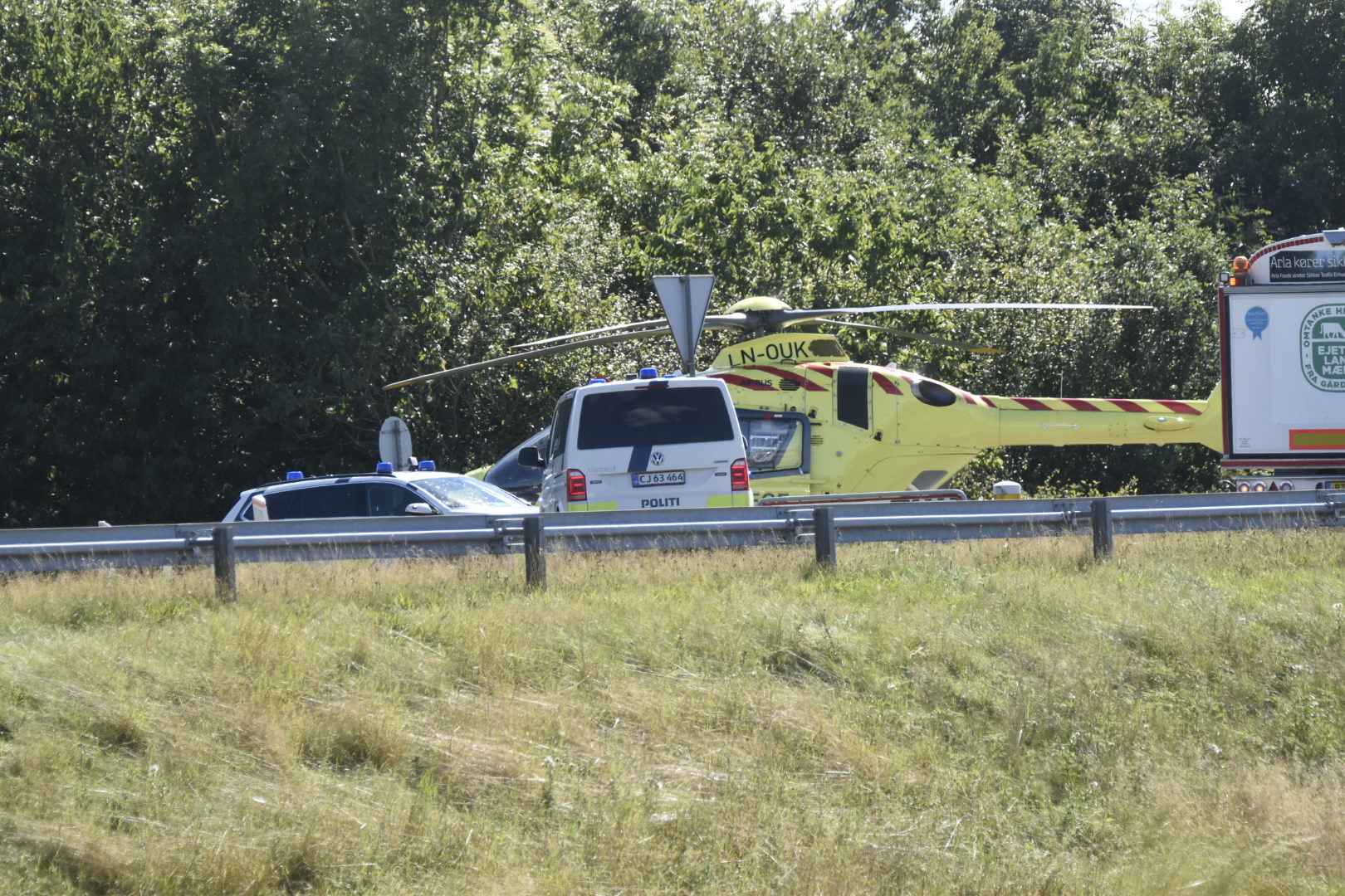Lige nu spærrer en voldsom ulykke en hovedvej ved den vestjyske by Ørnhøj.