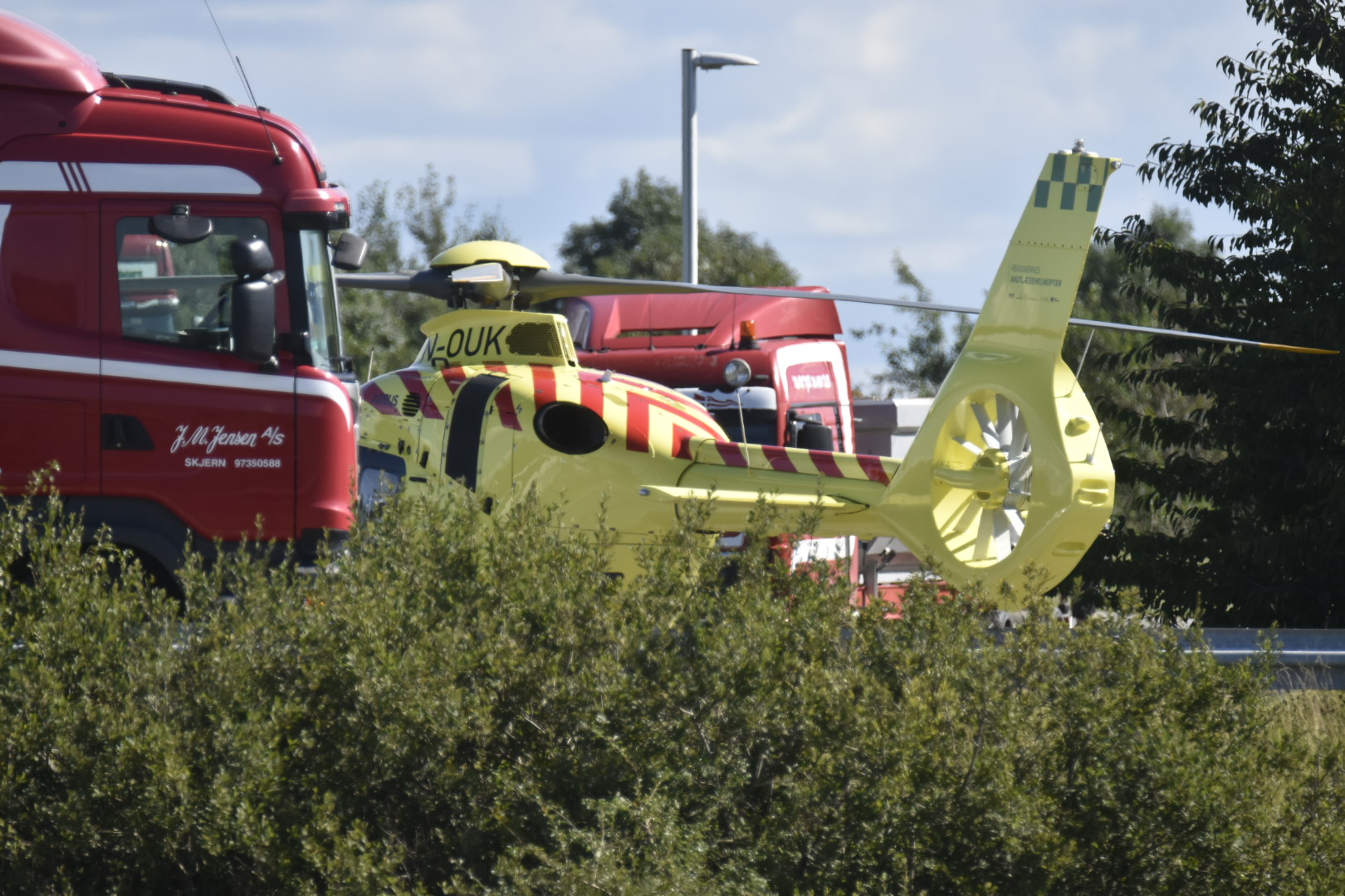 Der er både ambulance, politi og redningshelikopter på stedet.