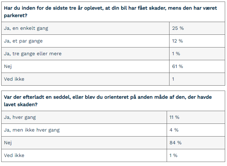 To ud af fem danskere har inden for de sidste tre år fået skader som fx buler, ridser og knækkede sidespejle, mens deres bil har været parkeret. Det viser en undersøgelse, som Kantar Public har lavet for Gjensidige.