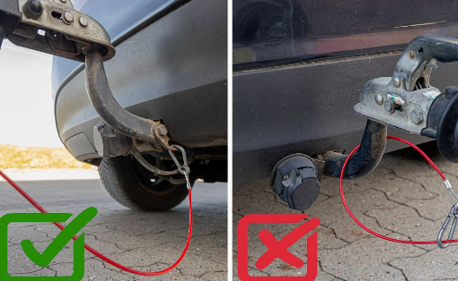 Wiren må ikke vikles i en løkke omkring trækkrogen, men skal klipses fast til et trækøje monteret på bilen. Monterer du din sprængwire forkert, kan du få betinget frakendt kørekortet.