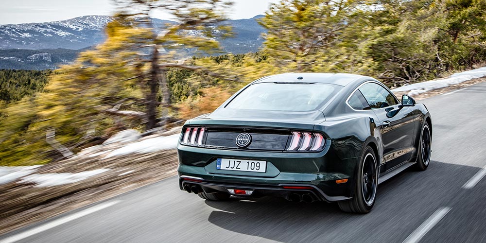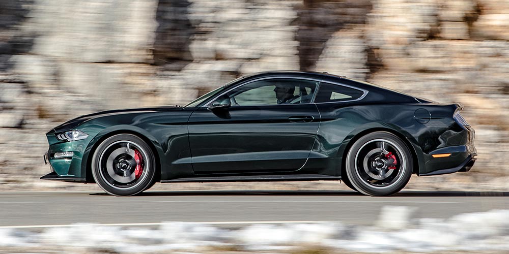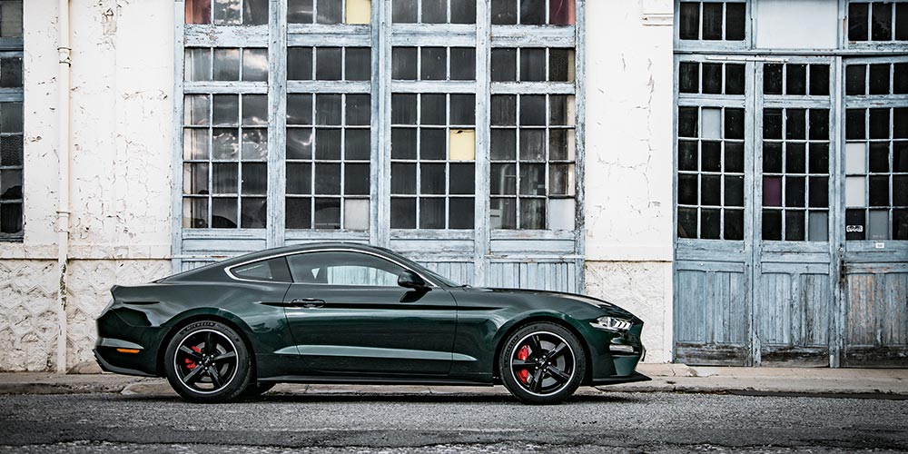 Den nye Bullitt kommer i samme klassiske Dark Highland Green-farve, som originalen gjorde for 50 år siden. Den fås også i Shadow Black. Specialmodellen er udstyret med 19” klassiske Torq Thrust-fælge og sportsrøde Brembo-bremsekalibre.