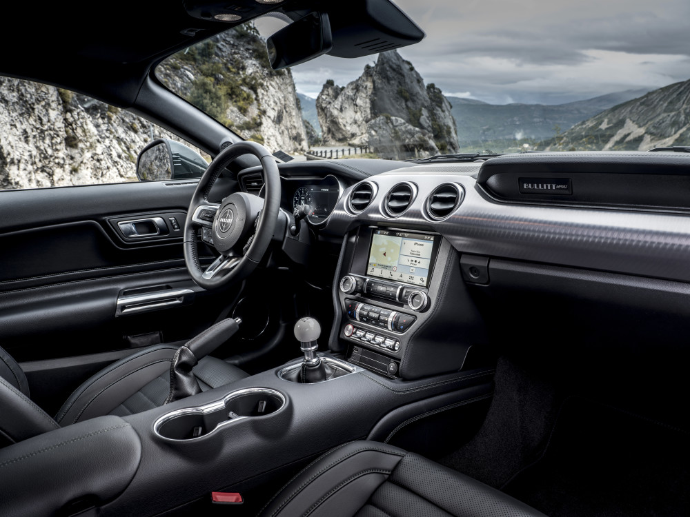 Når man sætter sig ind den nye Mustang Bullitt, mødes man tilmed af en unik velkomstskærm, der erstatter det velkendte ponylogo med et billede af selve bilen. Andre features, der ligeledes gør honnør til McQueen-modellen fra dengang, inkluderer diskrete kromdetaljer omkring den unikke sorte frontgrill, som er helt uden emblemer.