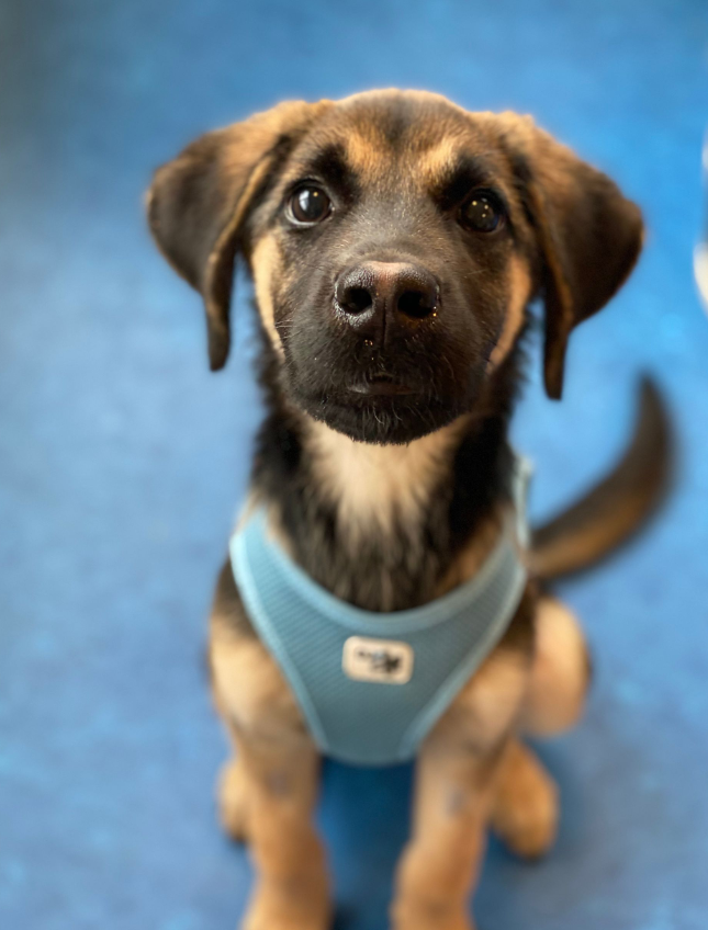 Den fire måneder gamle schæferhvalp Liv blev fundet lænket til en radiator, da ejeren var blevet indlagt. Den lille trold var så svag, at hun ikke kunne stå på benene. Hun blev straks bragt til Dyreværnets internat i Rødovre, hvor hele dyrlægeteamet stod klar til at behandle hende.