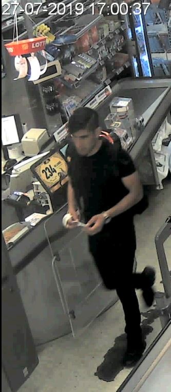 Gerningsmand A beskrives som mand, 25-30 år, ca. 170 cm. høj, alm. af bygning med kort sort hår. Han var iført sort hættetrøje med hvide ærmer og hvidt på ryggen, sorte bukser og medbragte sort rygsæk med gult logo ”CAT”.