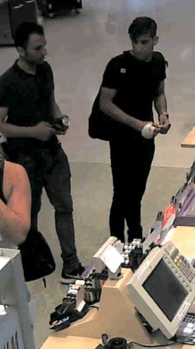 Gerningsmændene har lagt spiritusflasker i en indkøbskurv og flyttet sig til et sted uden for overvågningskameraerne, hvor de har lagt flaskerne i en sort rygsæk med gult logo ”CAT”, hvorefter de har forladt forretningen, ofte gennem selvbetjeningslinjen.