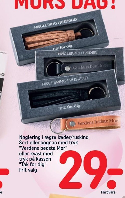 Supermarkedskæden lancerer nemlig en læder-nøglering med indgraveringen “Verdens bedste mor” – et enkelt, men rørende budskab. Den lille gave er sat til salg i forbindelse med Mors Dag til kun 29 kroner og kan findes i butikkens tilbudsavis.
