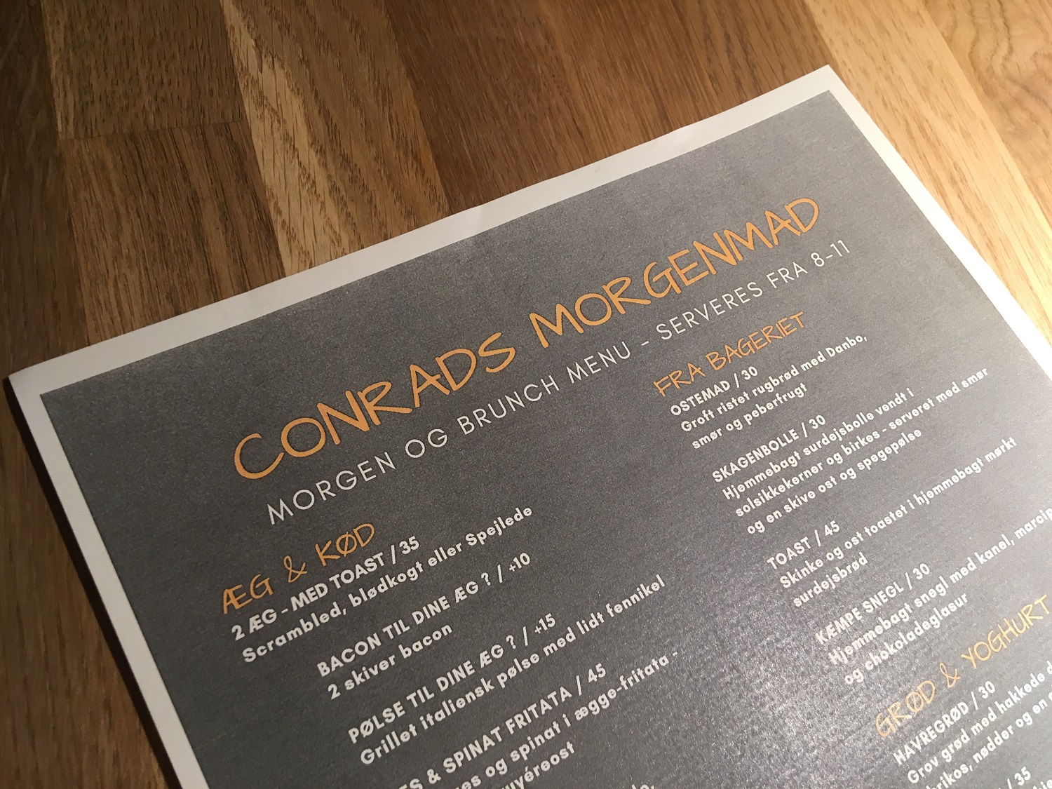 Det er muligt at bestille de nye morgenmadsanretninger på Conrads fra klokken 8 til 11. Ønsker man en gammeldags brunch-tallerken kan den stadig købes indtil klokken 12.