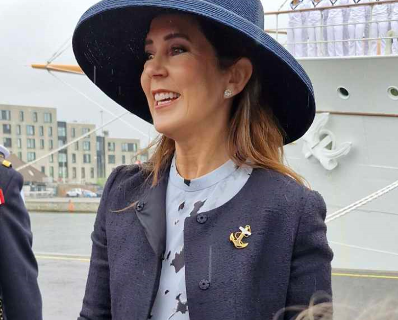 I går gik turen til Vejle, og her videreførte dronning Mary en smuk tradition. Hun bar nemlig en lille broche til ære for dronning Margrethe og Kongeskibet Dannebrog.