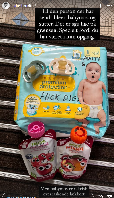Ja, du læser rigtigt. Og for at være helt konkret indeholdt pakken babymos, sutter og en pakke bleer, hvor der stod ‘fuck dig’.