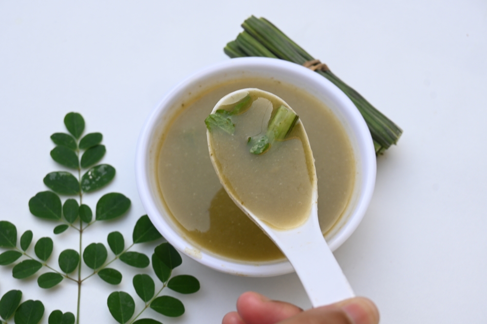 Tilsæt 1 spsk tørrede moringa blade
