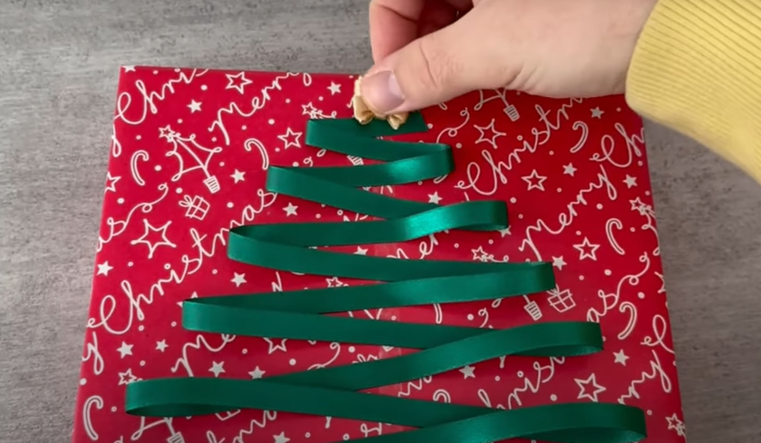 Med gaflen kan du skabe en lille, charmerende sløjfe, mens båndet kan forvandles til et juletræsdesign på gaven.