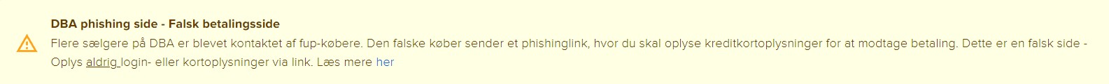 Tjek web-adressen – Vores adresse er www.dba.dk og ikke fx http://dba.dk-service.website…