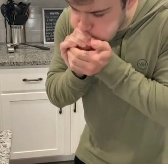 Til slut skal der pustes i den ene ende, og så vupti! Så er ægget ud af skallen. Foto fra Tik Tok