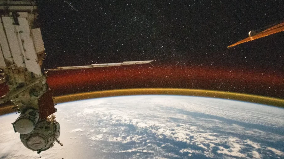 Airglow fænomenet er svært at iagttage fra jordens overflade, men det afslører sig i al sin pragt, når man betragter det fra rumstationens højde.
