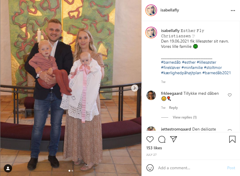 På sin Instagram-profil deler kæresten Isabella Fly Geertsen ud af familiens liv, hvor hun også har delt et billede fra datterens dåb.