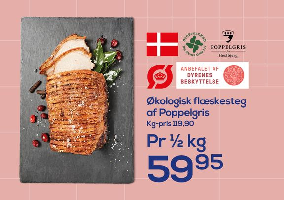 Irmas slagtilbud var en økologisk flæskesteg af Poppelgris til 59,95 kr. pr ½ kilo.