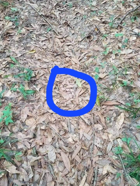 Ved første øjekast ligner det et billede af en skovbund, hvor der ligger tørrede løv, men faktisk gemmer der sig en yderst skræmmende detalje.
