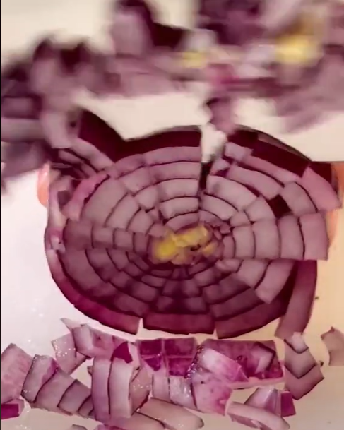 “Jeg var så gammel her, da jeg lærte, at man kunne skære et løg i tern på denne måde. Fortæl mig venligst, at jeg ikke er den eneste der ikke vidste det før nu.”