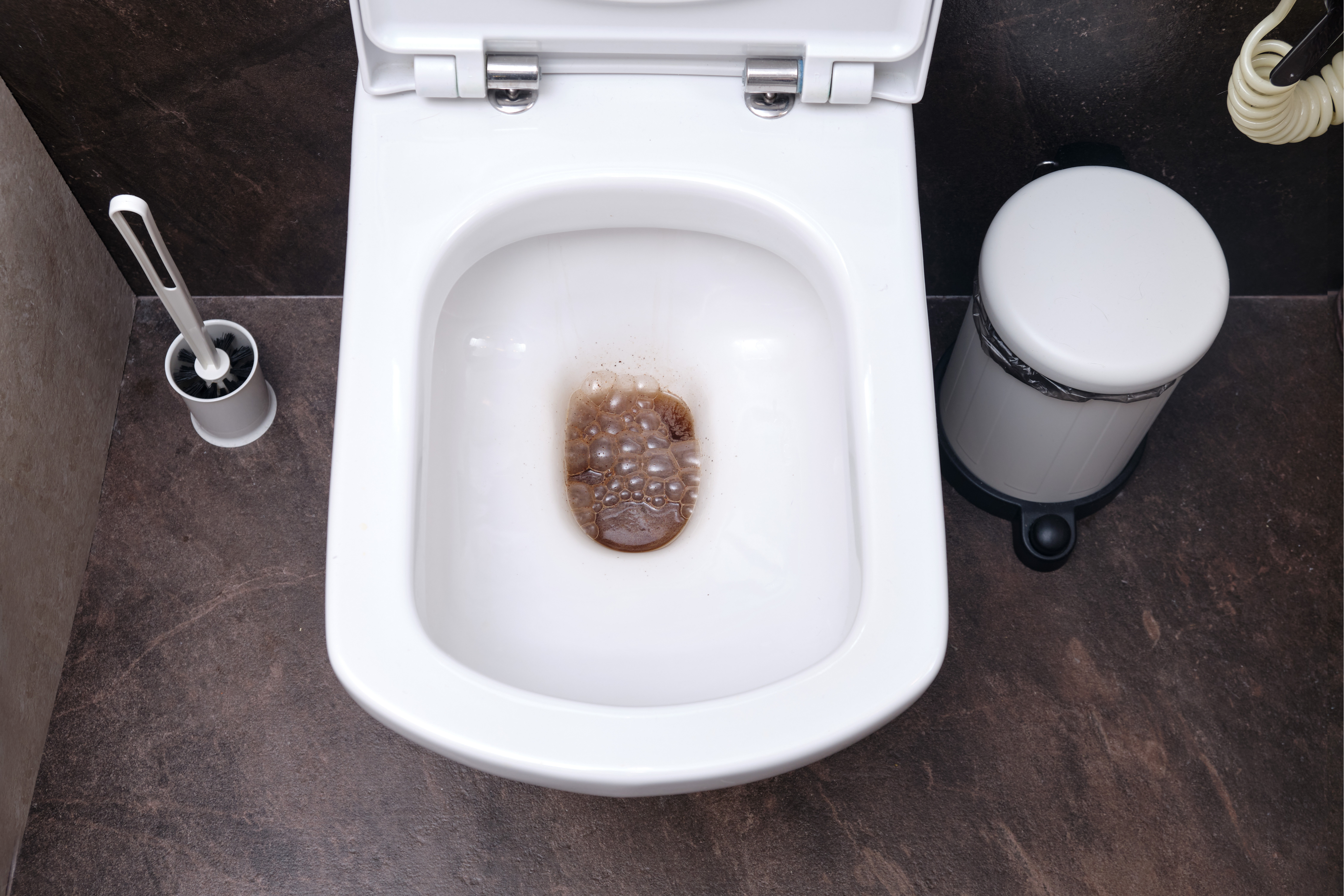 Til slut hælder du forsigtigt det varme vand ned i toilettet.