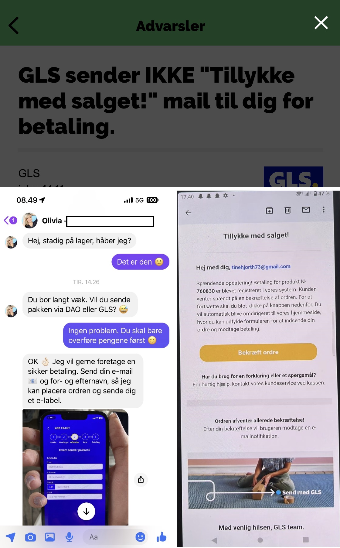 Ved salg på forskellige salgssider, oplever flere danskere at køber vil købe via en “sikker betaling” og derefter sender en mail for at overføre penge via en “GLS-platform”.