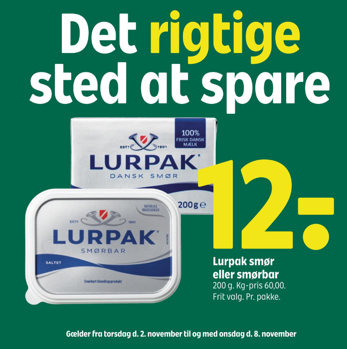 Den 2. november blev det muligt at sikre sig en pakke Lurpak smør til kun 12 kroner, og det tilbud udløber i morgen, den 8. november.