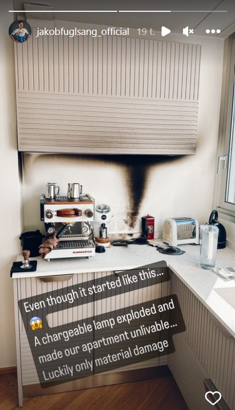 Det viste sig, at en oplader, der sad i en stikkontakt, var eksploderet. Heldigvis var ingen hjemme, da eksplosionen fandt sted, og dermed ingen, der kom til skade, fortæller Loulou Fuglsang til det danske medie.