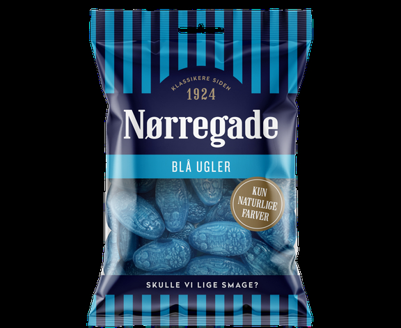 Spangsberg Chokolade og United Drinks ejer varemærket ”BLÅ UGLER” for henholdsvis ”konfektureprodukter”, der bl.a. omfatter bolsjer, og ”alkoholholdige drikke” og har siden 2017 indgået et samarbejde om produktserien Nørregade shots og varianten ”BLÅ UGLER”.