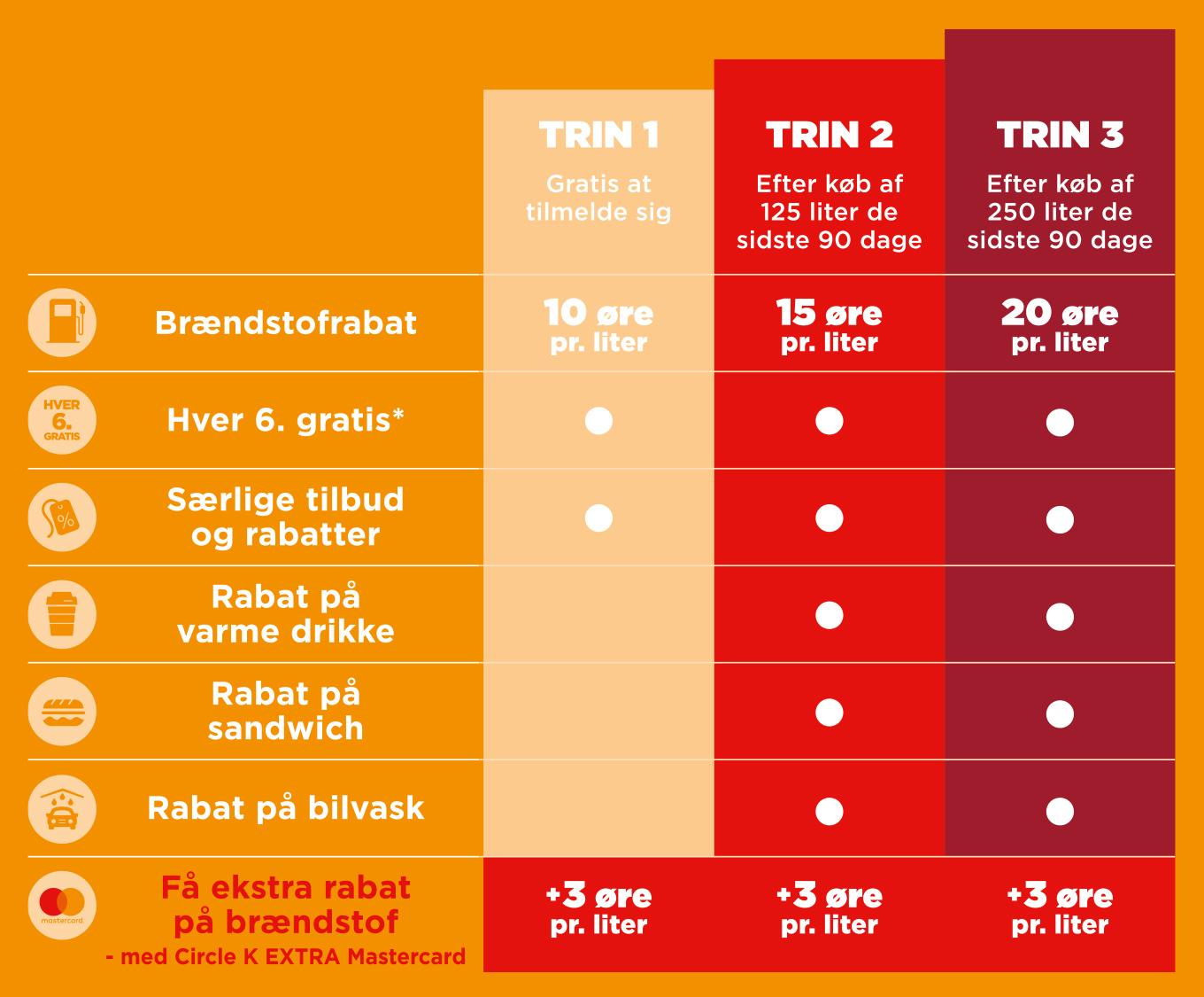 EXTRA er opdelt i tre trin, og din rabat bestemmes løbende ud fra den mængde brændstof, du har tanket i de seneste 90 dage.