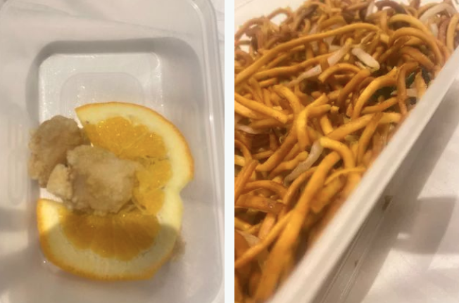 Roshan delte derefter et billede af den såkaldte Orange Fish, som viste en skive appelsin med to mørnede stykker og en bunke nudler – uden grøntsager eller rejer i.