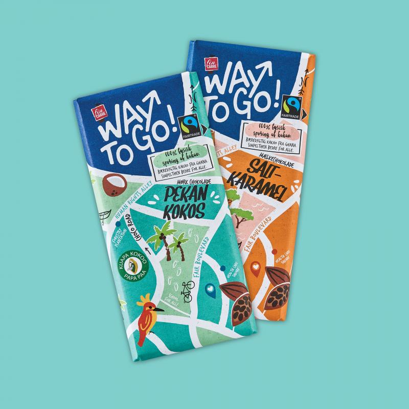 De nye Way to Go!-chokoladebarer er blevet til i samarbejde med Fairtrade.