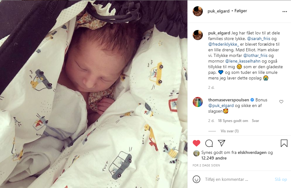 På sin Instagram-profil deler Puk et billede af familiens nyeste medlem, Elliot.