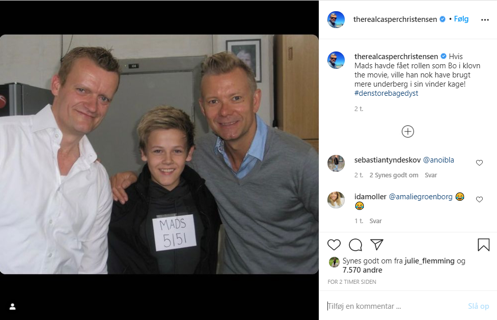 “Hvis Mads havde fået rollen som Bo i klovn the movie, ville han nok have brugt mere underberg i sin vinder kage!” Sådan skriver Casper Christensen til billedet.