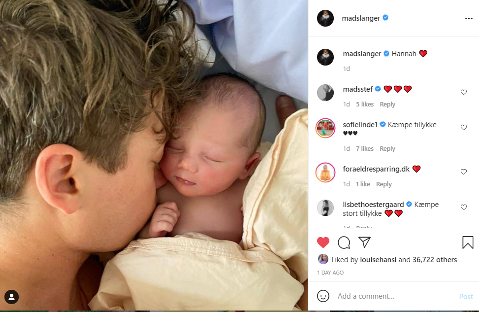I weekenden delte 37-årige Mads Langer og hustruen 27-årige Julie Lillelund Langer, et helt særligt billede på Instagram – nemlig et billede af deres lille nyfødte datter.