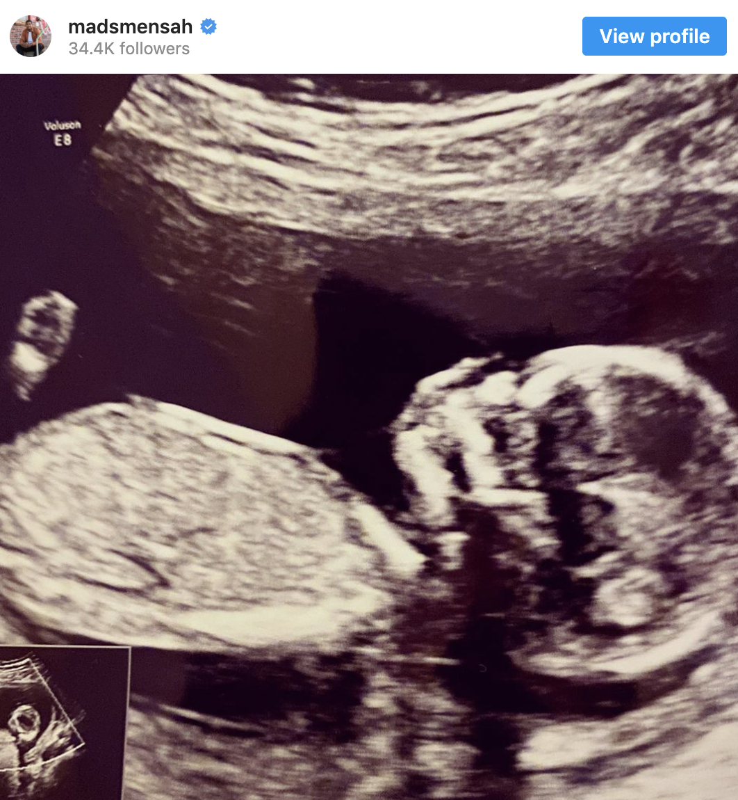 Men mens Mads Mensah har kæmpet for Danmark, har konen Line Bødker Nielsen båret rundt på en lille ny.