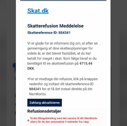 I stedet kan du med fordel kontakte Skattestyrelsen gennem officielle kanaler og høre, om der er tale om en oprigtig besked.