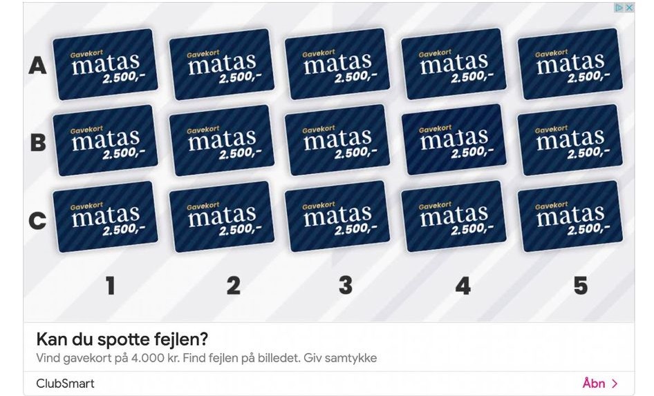 Det kommer frem som en paid ad og er derfor som en reklame. Man deltager ved at spotte fejl på Matas gavekort.