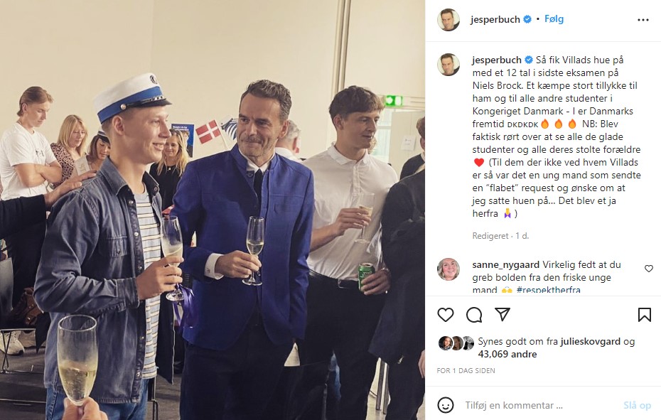 Derfor var det et ønske af hans, at Jesper Buch satte huen på ham. Det oplyser Jesper Buch på sin Instagram-profil.