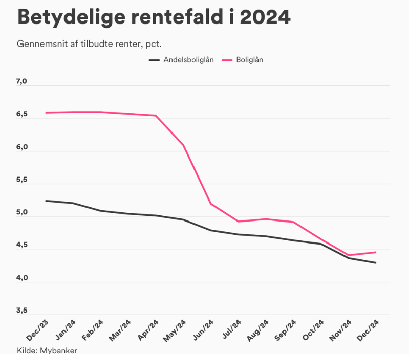 2024 bød på store rentefald til danskere, der har lånt penge i banken til ejer- eller andelsbolig.
