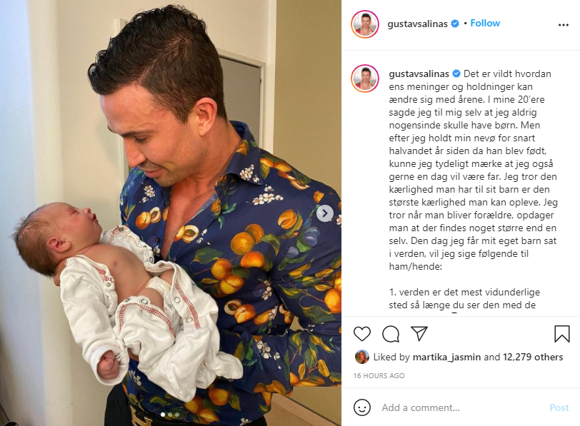 “I mine 20’ere sagde jeg til mig selv, at jeg aldrig nogensinde skulle have børn. Men efter jeg holdt min nevø for snart halvandet år siden, da han blev født, kunne jeg tydeligt mærke, at jeg også gerne en dag vil være far,” lyder det ærligt fra Gustav, der tilføjer, at det må være den største form for kærlighed, man kan opleve.