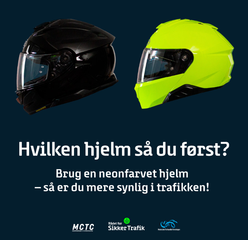 Derfor går Rådet for Sikker Trafik, Motorcykel Forhandler Foreningen og MCTC – Landsforeningen for motorcyklister nu ud med synlighedskampagnen “Hvilken hjelm så du først?”