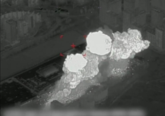 På optagelserne ses missilet kort på vej direkte ned mod indkøbscenteret, og skaber en enorm ildkugle.
