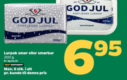 Én pakke Lurpak smør koster nemlig kun 7 kroner i Rema 1000 lige nu, hvilket må siges at være noget af et tilbud, da normalprisen er 26,95 kroner per pakke hos kæden.