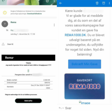 “Vi er blevet informeret om, at der florerer en falsk mail med ‘Rema 1000’ som afsender. Mailen fortæller, at du kan vinde et gavekort på 2000 kr,” skriver Rema 1000 og fortsætter: