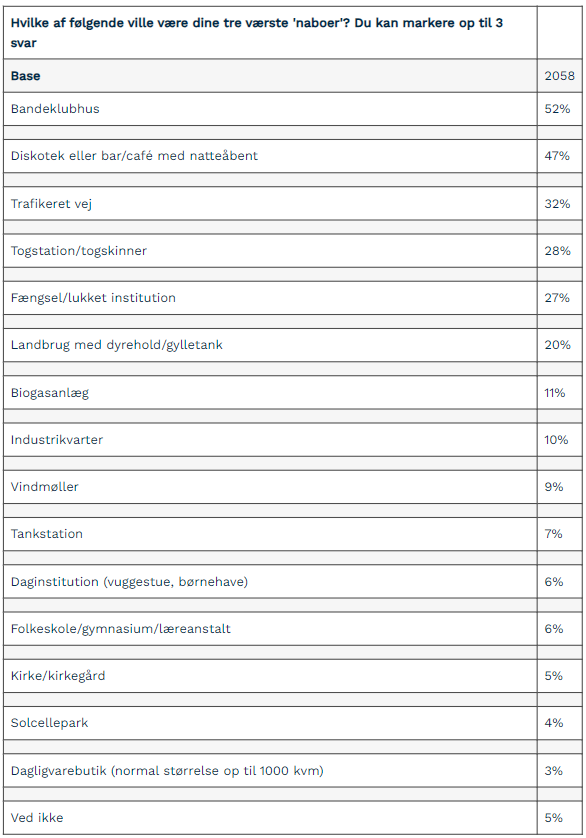 Rundspørge: Bandeklubhus, diskotek og trafikeret vej er det værste, vi kan forestille os at bo ved siden af, viser stor måling fra YouGov og Home – se hele nabolisten.