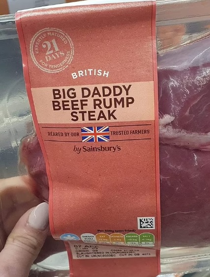 Der er tale om 38-årige Rose Robinson fra Norwich i England, der var ude at handle i sin lokale Sainsbury’s. Her opdagede hun en bøf , der var blevet navngivet ‘Big Daddy beef rump steak’.