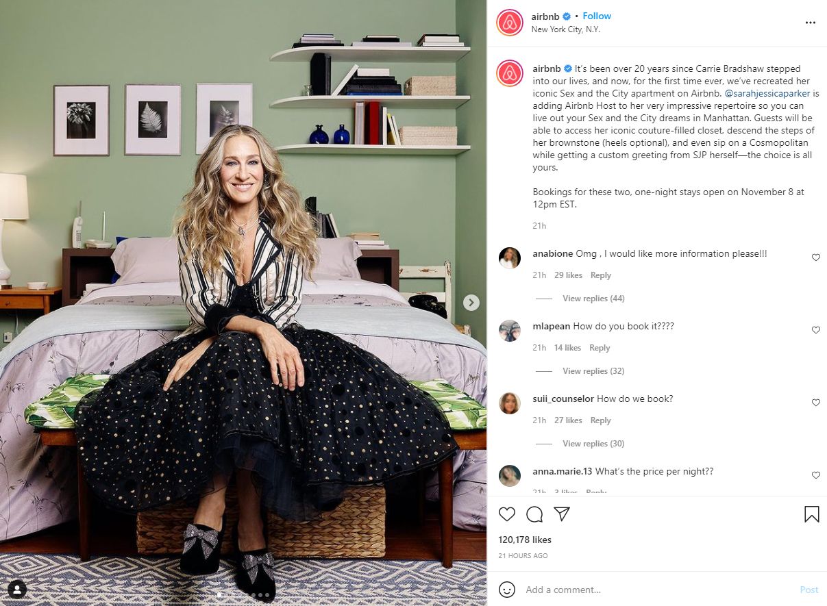 “Det er over 20 år siden at Carrie Bradshaw trådte ind i vores liv, og nu, for første gang nogensinde, har vi genskabt den ikoniske Sex and the City-lejlighed hos Airbnb,” lyder det fra Airbnb.
