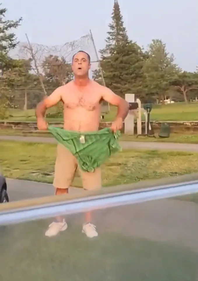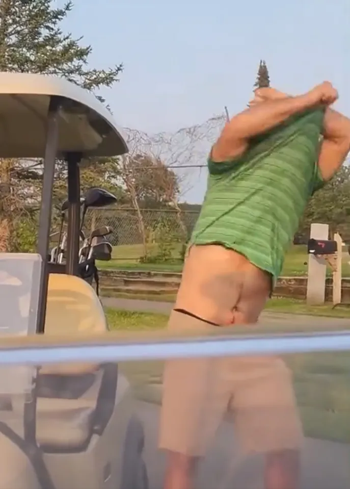 I en bizar episode valgte en golfspiller at rive sin t-shirt af og komme med en grov, voldsom tirade mod nogle andre spillere på banen. Det hele startede med, at han var blevet beskyldt for at have stjålet en golfbold.