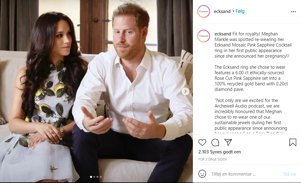 I klippet bærer Meghan Markle nemlig en fingerring, med en pink safir. Safiren har en anseelig størrelse og var derfor heller ikke til at overse.